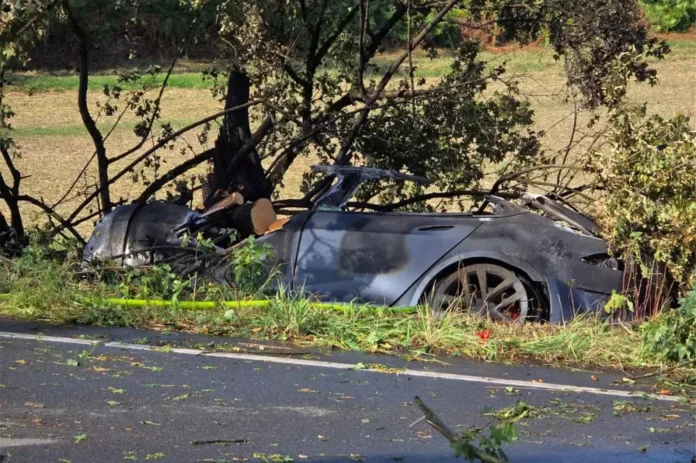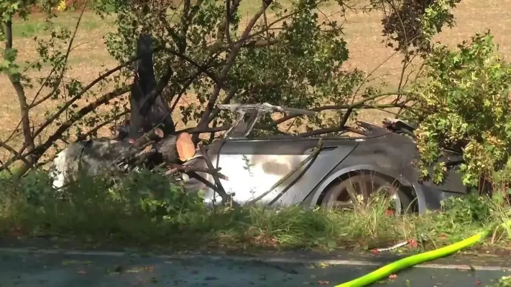The scene of the Tesla Model S accident in Germany on September 7, 2025.
