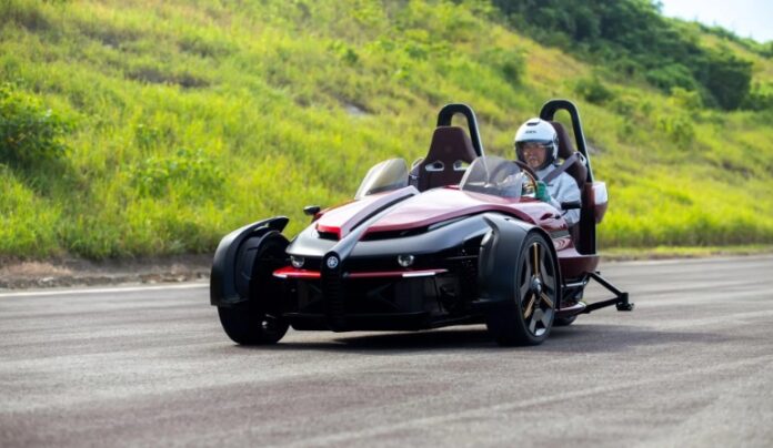 The Tricera features a trike layout with two front wheels and one rear wheel, coupled with an agile steering system. This system allows the front and rear wheels to turn in unison or in opposite directions, ensuring high-speed stability and improved cornering agility. Drivers can also disable the rear-wheel steering for a more conventional handling experience.