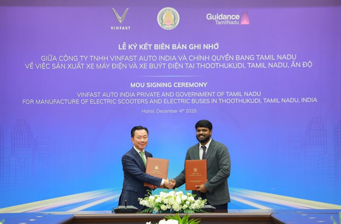 VinFast and the Tamil Nadu Government officially signed a Memorandum of Understanding (MOU) to allocate approximately 200 hectares of land in the SIPCOT Industrial Park, Thoothukudi, to expand the company’s existing facility.